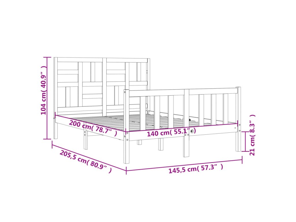 - Celkové rozměry postele: 205,5 x 145,5 x 104 cm (D x Š x V)