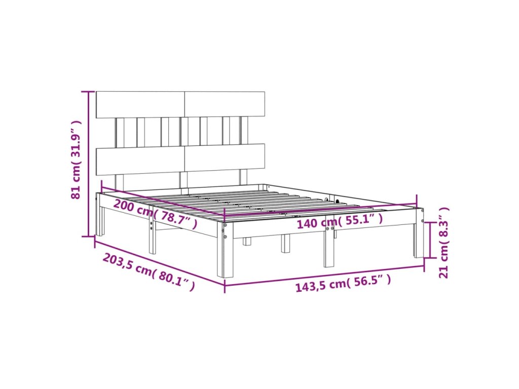 - Celkové rozměry postele: 203,5 x 143,5 x 81 cm (D x Š x V)