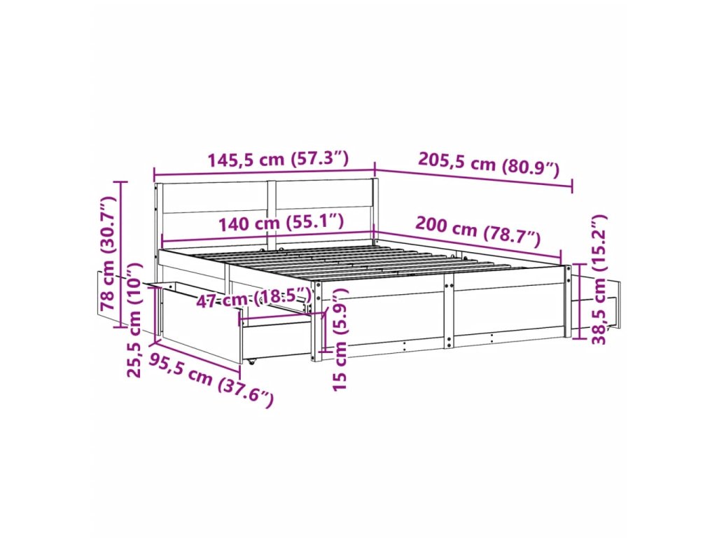 - Rozměry zásuvky pod postel: 95,5 x 47 x 25,5 cm (D x Š x V)