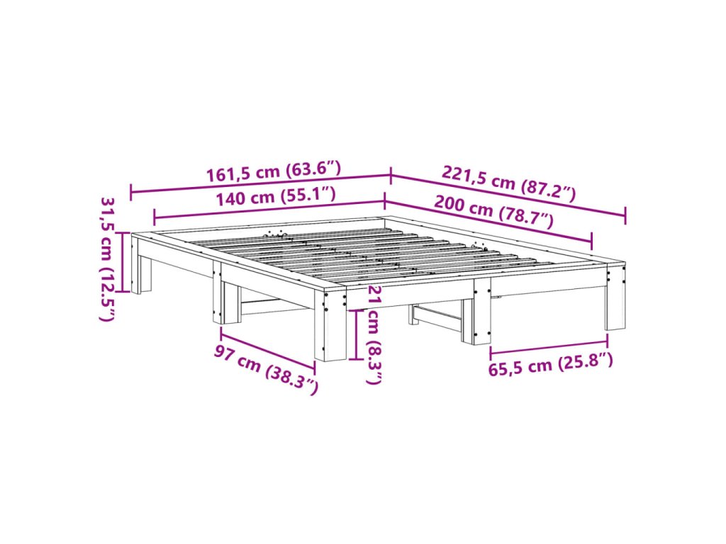 Postel bez matrace 140 x 200 cm masivní borovice 3308738