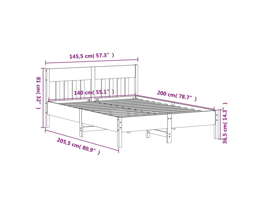 Postel bez matrace 140 x 200 cm masivní borovice 842646