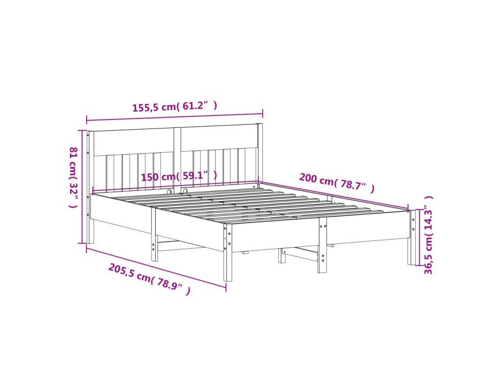 Postel bez matrace 150 x 200 cm masivní borovice 842642