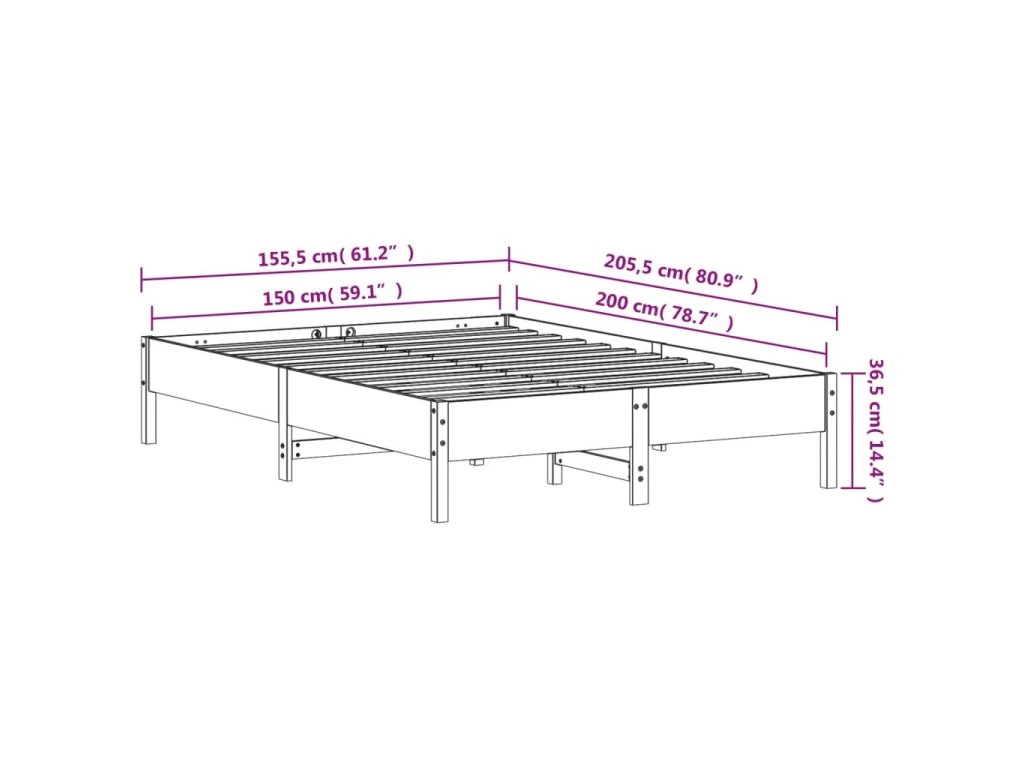 Postel bez matrace 150 x 200 cm masivní borovice 842694