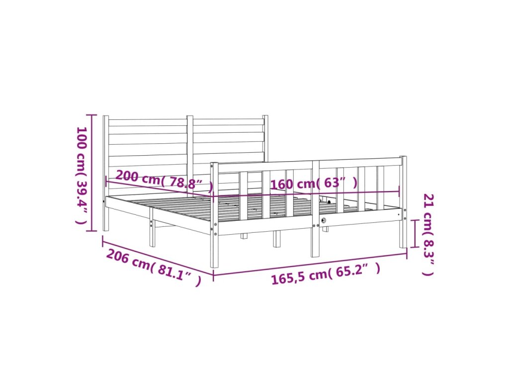 - Celkové rozměry postele: 206 x 165,5 x 100 cm (D x Š x V)