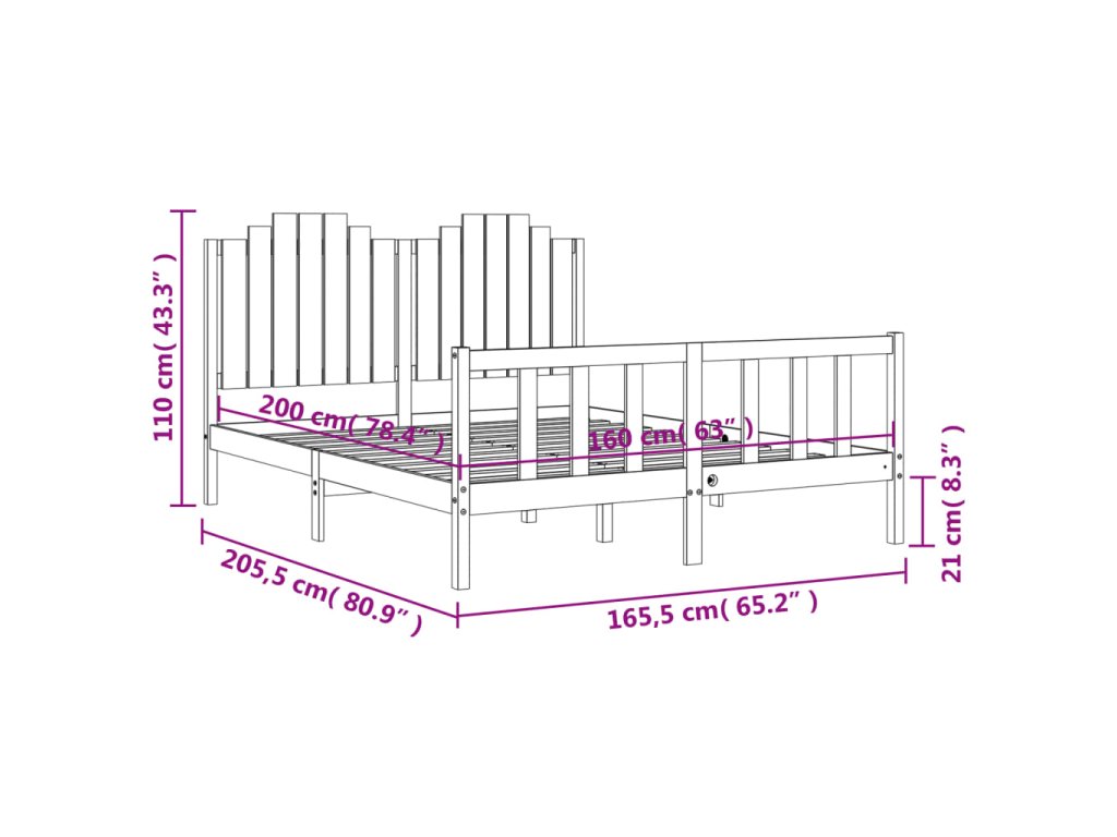 - Celkové rozměry postele: 205,5 x 165,5 x 110 cm (D x Š x V)