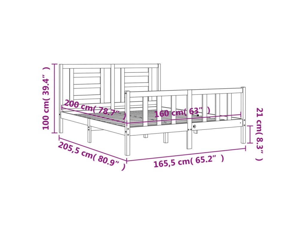 - Celkové rozměry postele: 205,5 x 165,5 x 100 cm (D x Š x V)