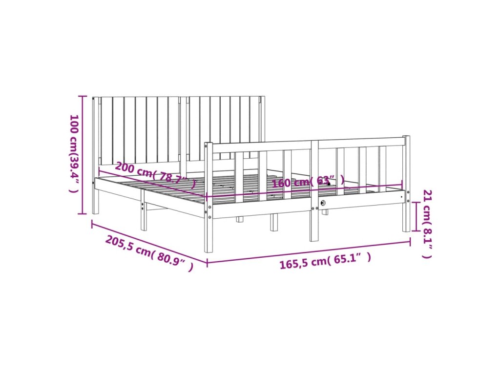 - Celkové rozměry postele: 205,5 x 165,5 x 100 cm (D x Š x V)