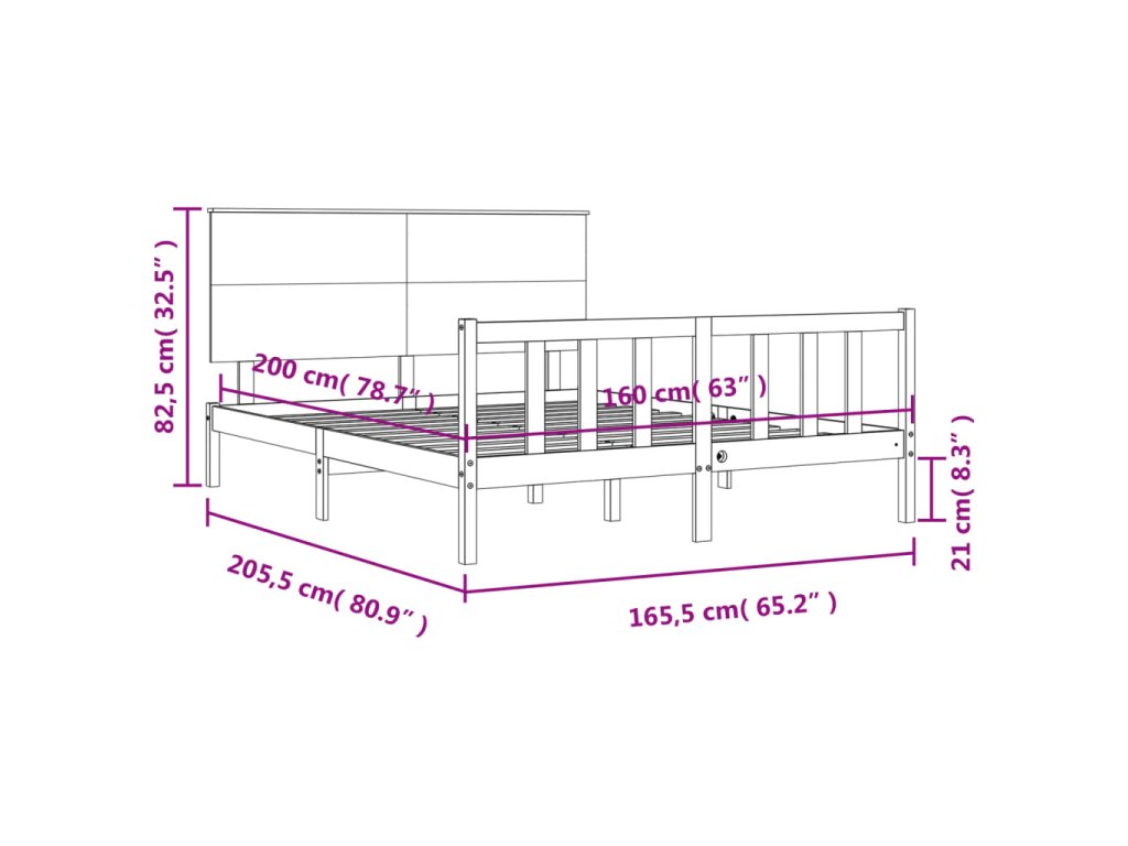 - Celkové rozměry postele: 205,5 x 165,5 x 82,5 cm (D x Š x V)