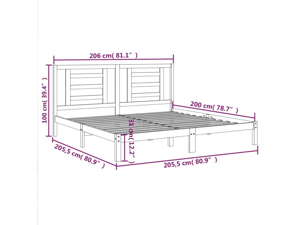 Postel bez matrace 200 x 200 cm masivní borovice 3104368