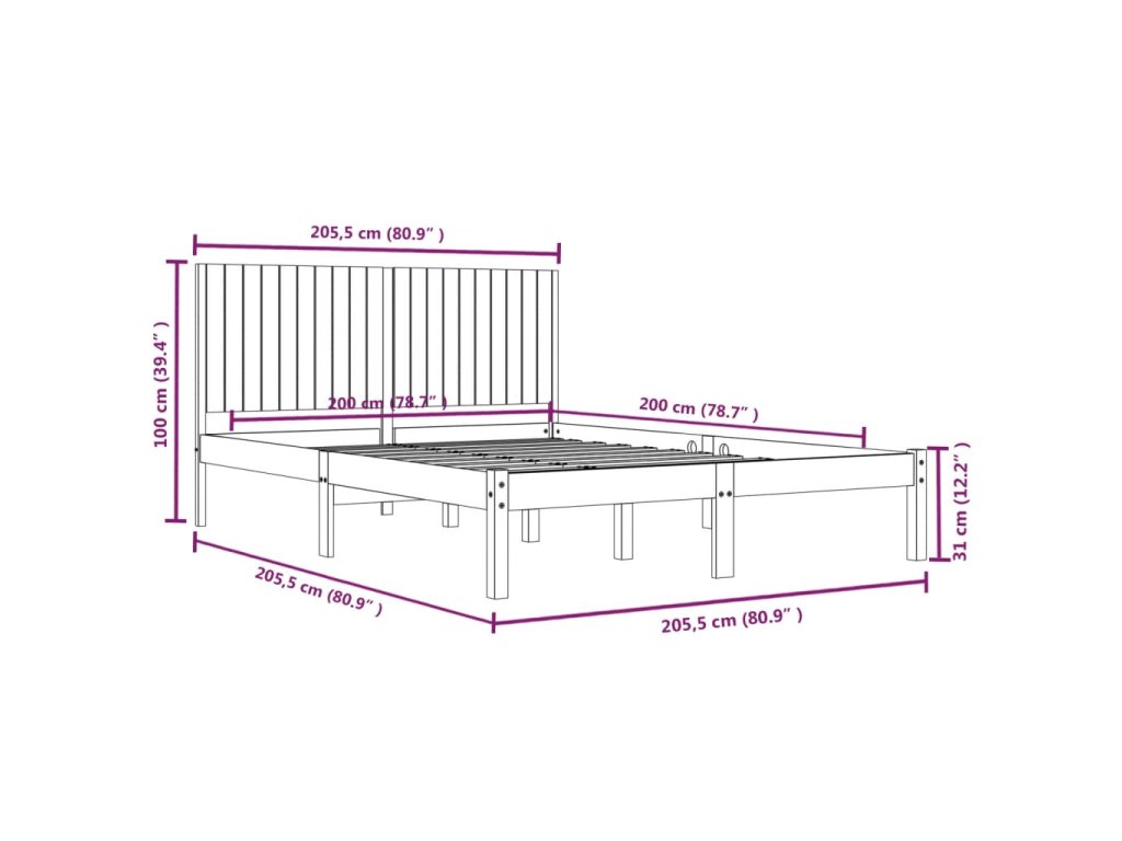 - Rozměry rámu postele: 205,5 x 205,5 x 31 cm (D x Š x V)