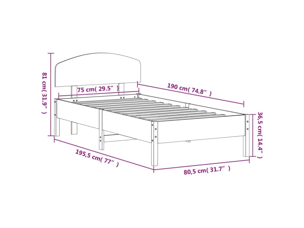 Postel bez matrace 75 x 190 cm masivní borovice 3207241