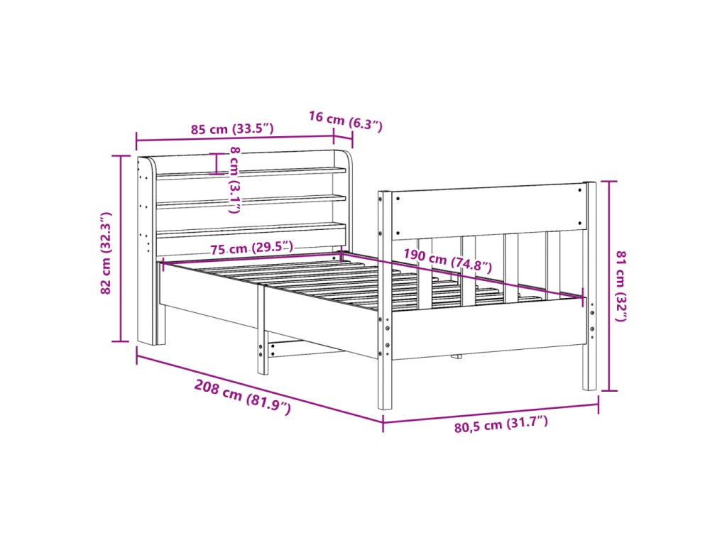 Postel bez matrace 75 x 190 cm masivní borovice 3307029