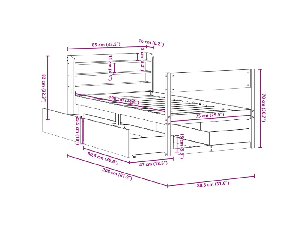 - Plně využijte prostor: Tento rám postele je vybaven dvěma zásuvkami, které poskytují úložný prostor pro uschování lůžkovin, sezónního oblečení a hraček.