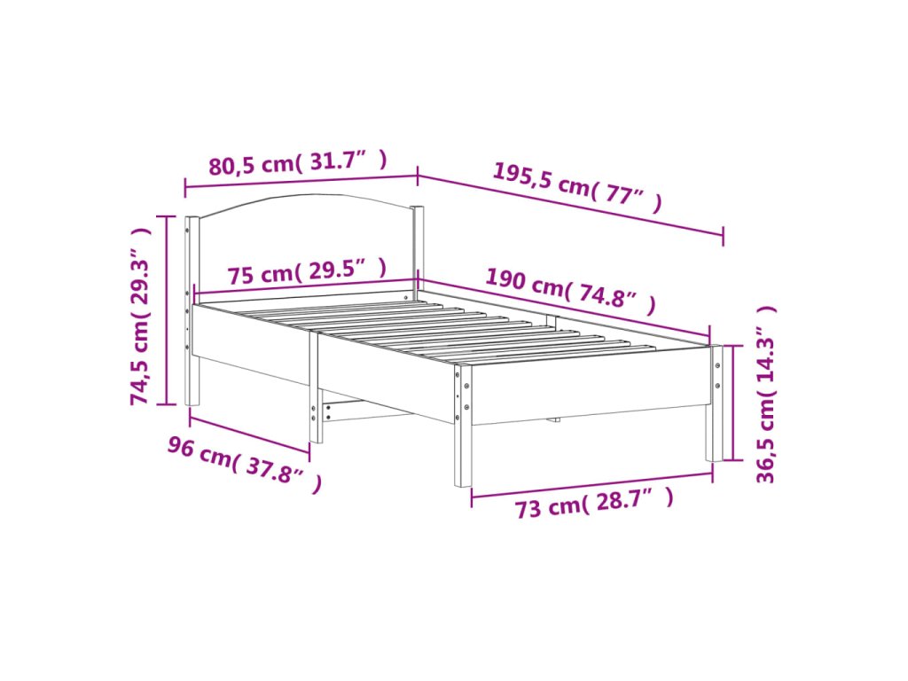 Postel bez matrace 75 x 190 cm masivní borovice 842626