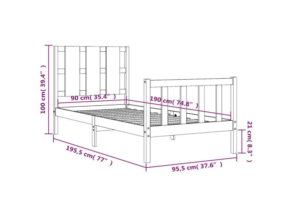 - Celkové rozměry postele: 195,5 x 95,5 x 100 cm (D x Š x V)