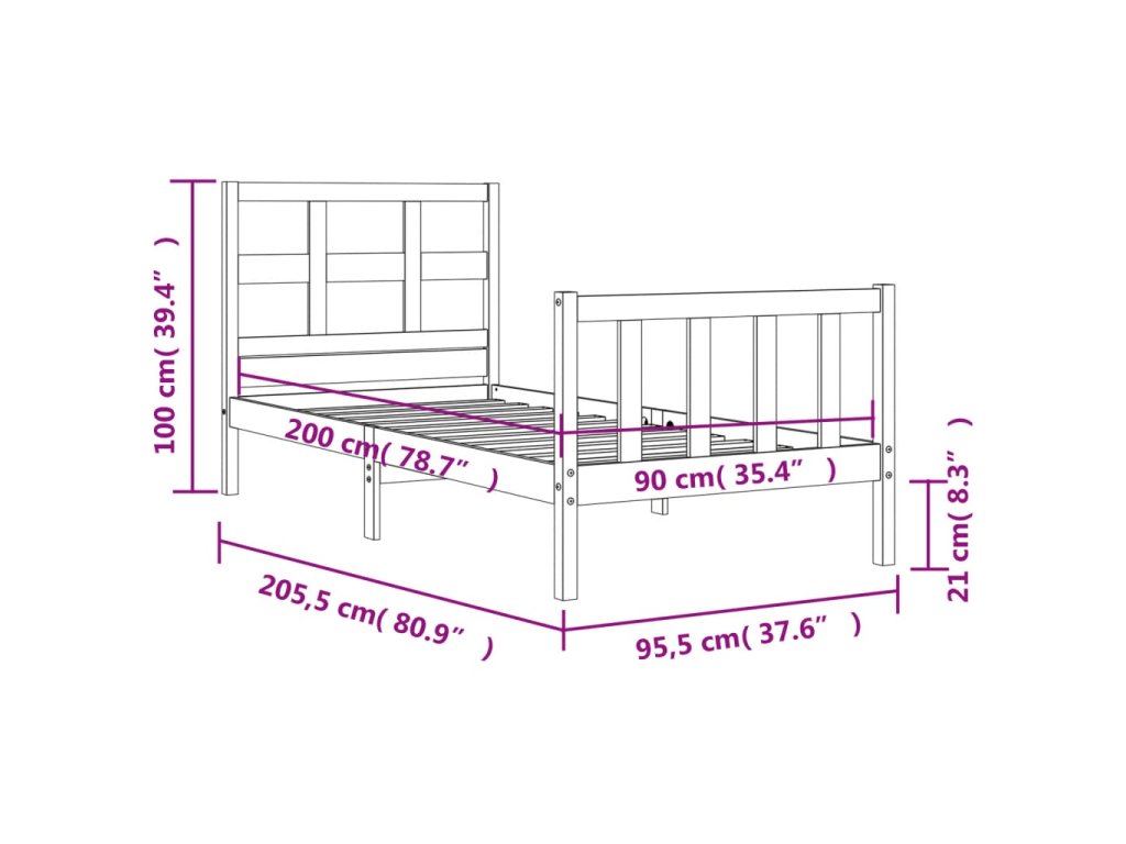 - Celkové rozměry postele: 205,5 x 95,5 x 100 cm (D x Š x V)