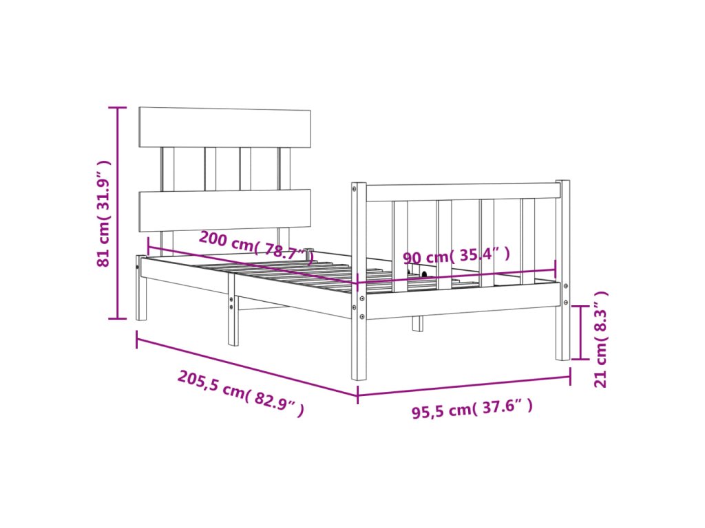 - Celkové rozměry postele: 205,5 x 95,5 x 81 cm (D x Š x V)