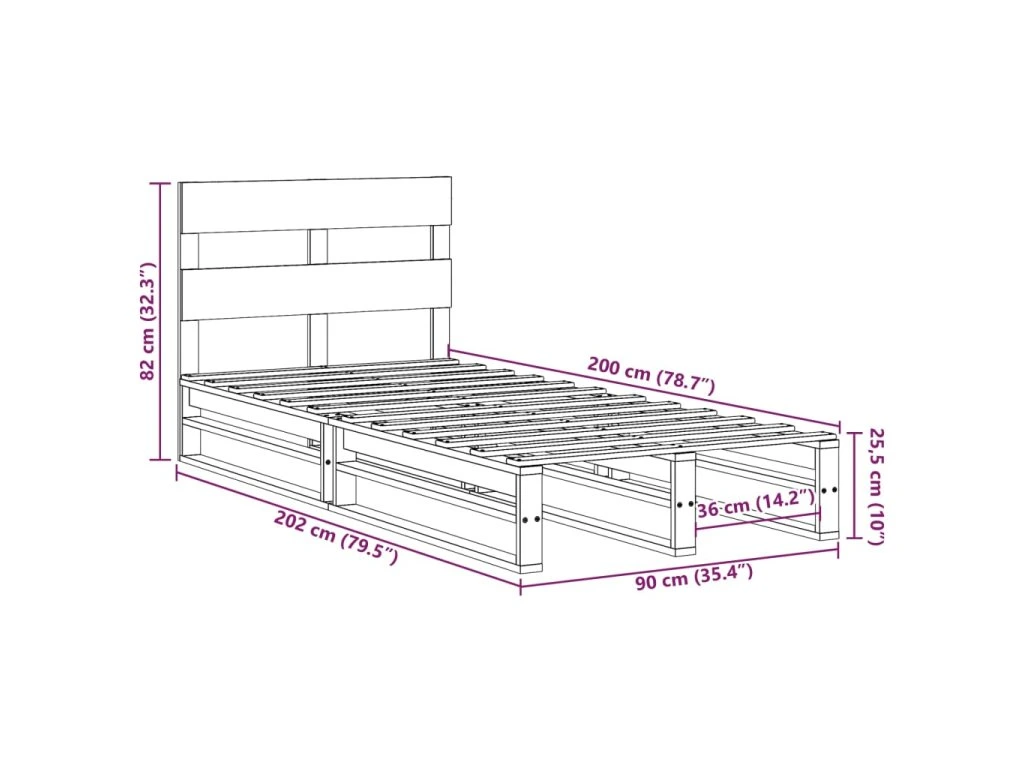Postel bez matrace 90 x 200 cm masivní borovice 850794