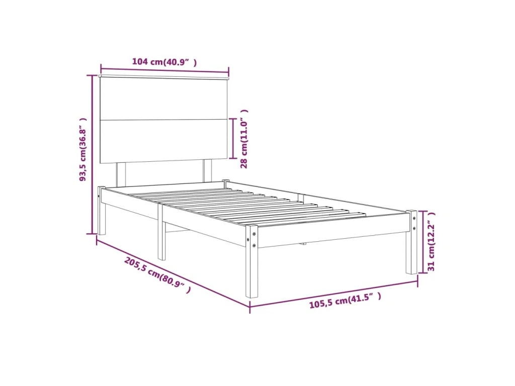 - Rozměry čela postele: 104 x 6 x 82,5 cm (Š x H x V)