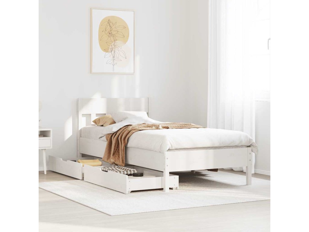 Postel bez matrace bílá 100 x 200 cm masivní borovice 3301873