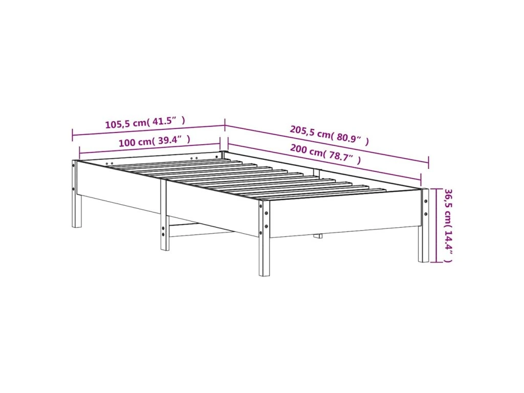 Postel bez matrace bílá 100 x 200 cm masivní borovice 842707