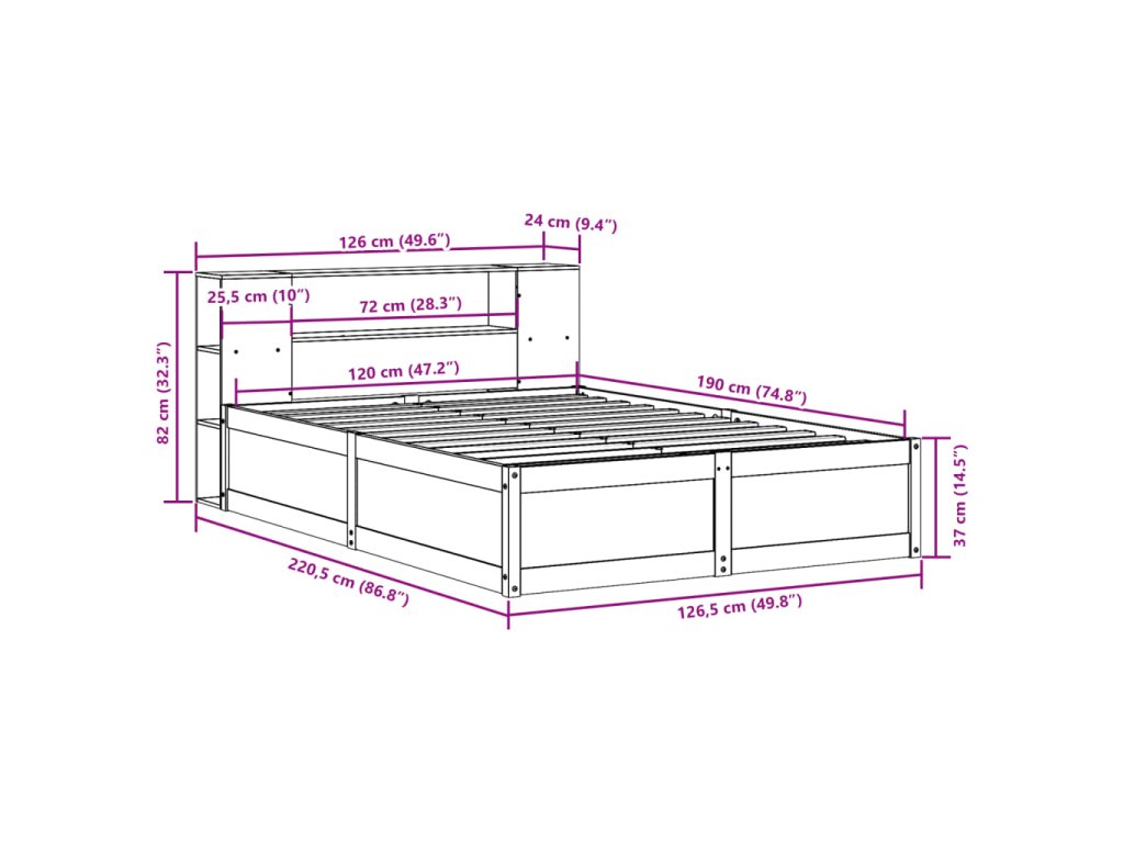 - Rozměry čela postele: 126 x 24 x 82 cm (D x Š x V)