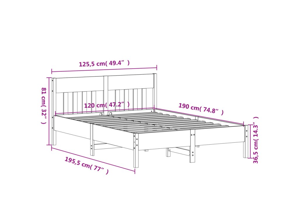 Postel bez matrace bílá 120 x 190 cm masivní borovice 842671