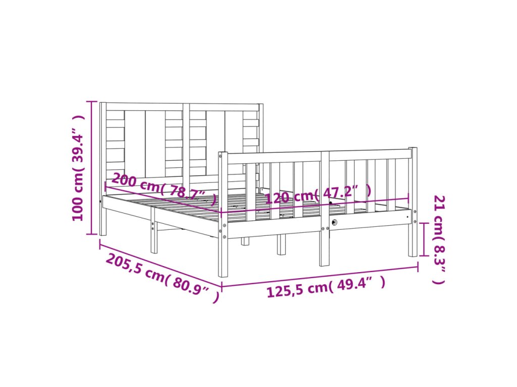 - Celkové rozměry postele: 205,5 x 125,5 x 100 cm (D x Š x V)