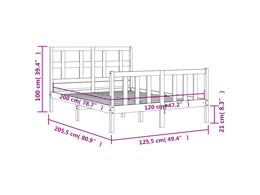 - Celkové rozměry postele: 205,5 x 125,5 x 100 cm (D x Š x V)