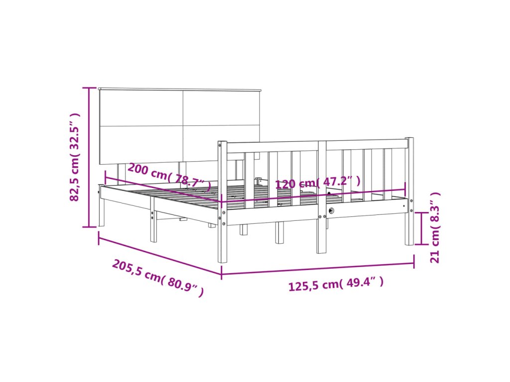 - Celkové rozměry postele: 205,5 x 125,5 x 82,5 cm (D x Š x V)