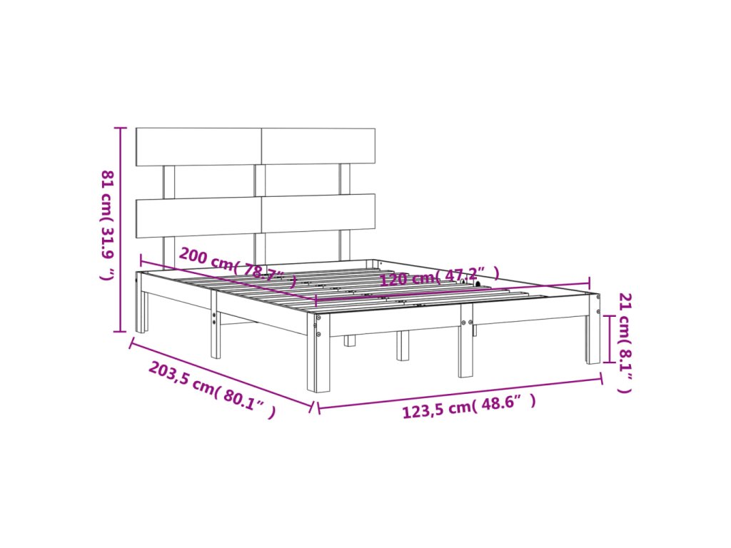 - Celkové rozměry postele: 203,5 x 123,5 x 81 cm (D x Š x V)