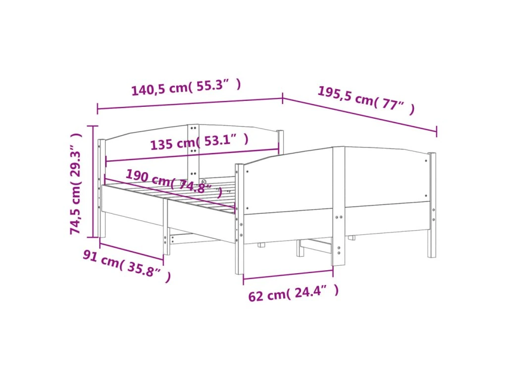 - Vhodné rozměry matrace: 135 x 190 cm (Š x D) (matrace není součástí balení)