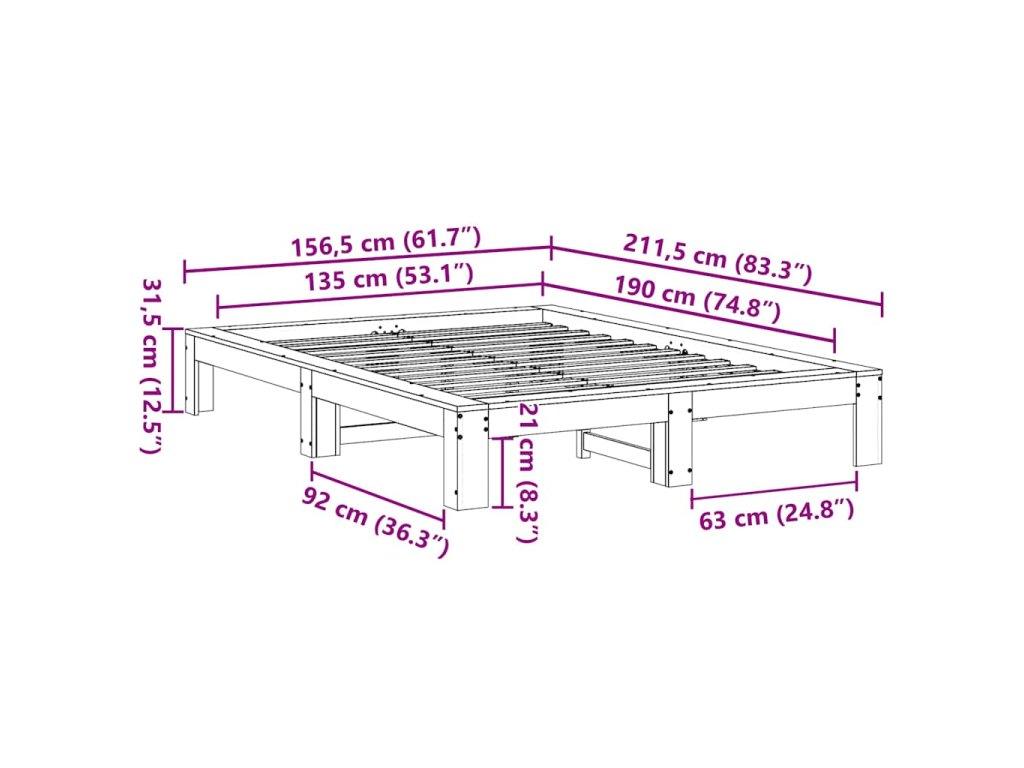 Postel bez matrace bílá 135 x 190 cm masivní borovice 3308748