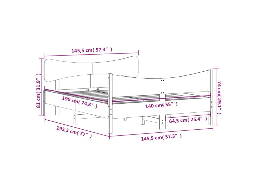 Postel bez matrace bílá 140 x 190 cm masivní borovice 3216394
