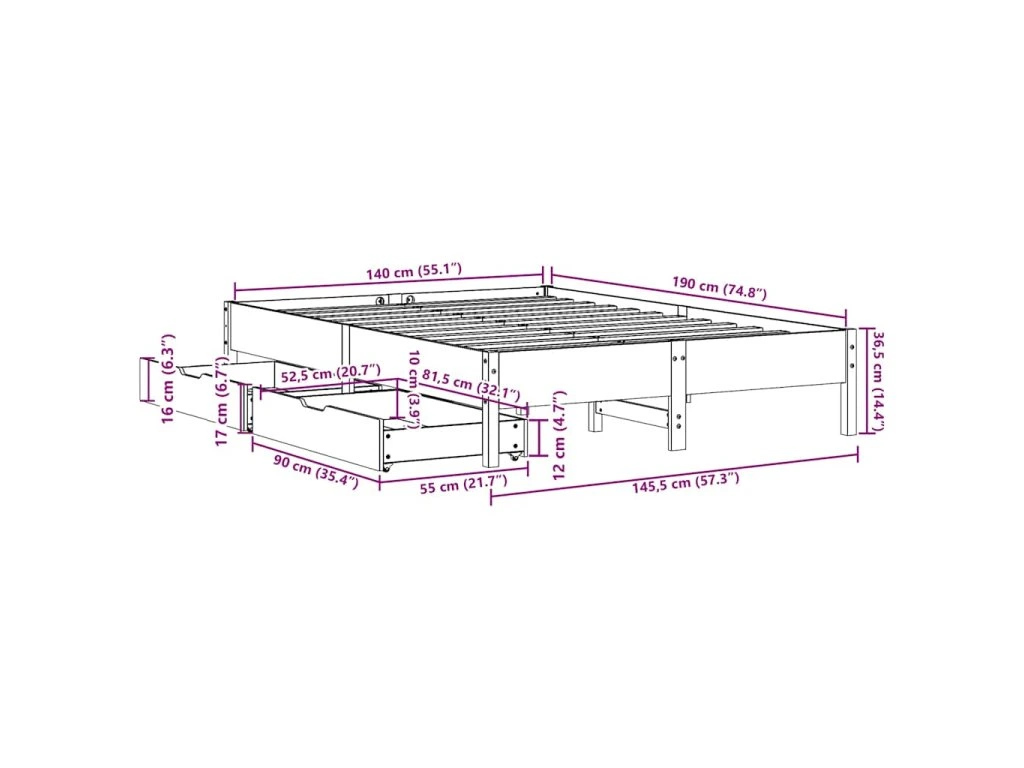 - Plně využijte prostor: Tento rám postele je vybaven dvěma zásuvkami, které poskytují úložný prostor pro uschování lůžkovin, sezónního oblečení a hraček.