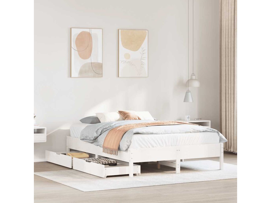 Postel bez matrace bílá 140 x 190 cm masivní borovice 3301723