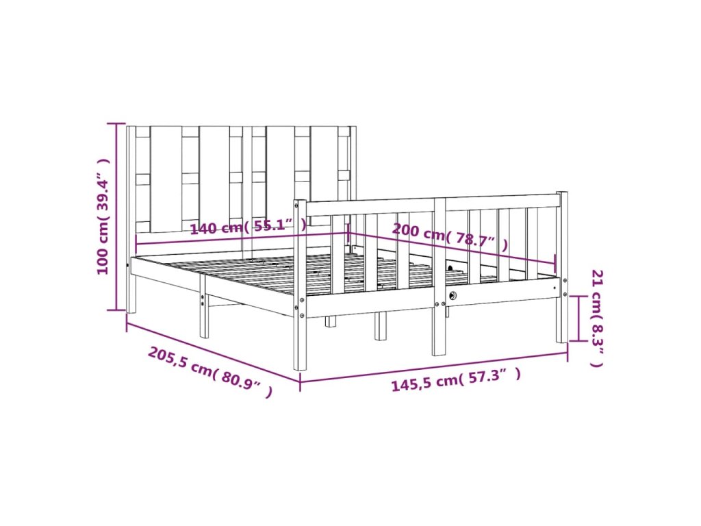 - Celkové rozměry postele: 205,5 x 145,5 x 100 cm (D x Š x V)