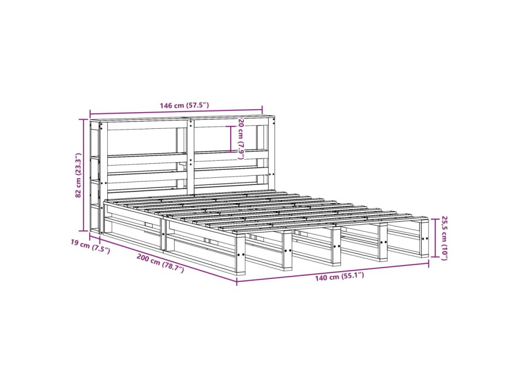 - Celkové rozměry postele: 219 x 146 x 82 cm (D x Š x V)