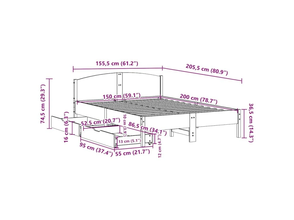 - Plně využijte prostor: Tento rám postele je vybaven dvěma zásuvkami, které poskytují úložný prostor pro uschování lůžkovin, sezónního oblečení a hraček.