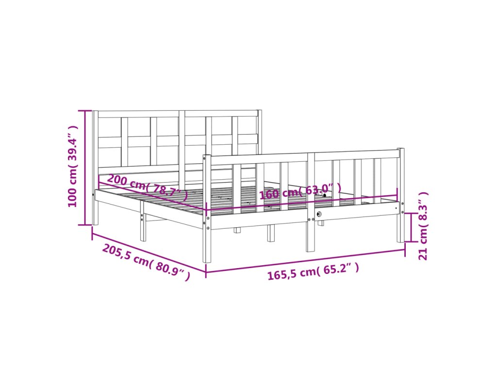 - Celkové rozměry postele: 205,5 x 165,5 x 100 cm (D x Š x V)