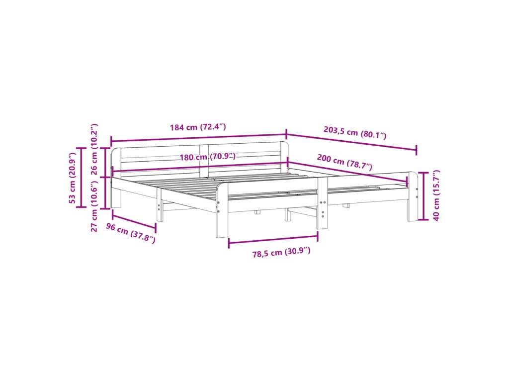 - Celkové rozměry postele: 203,5 x 184 x 53 cm (D x Š x V)