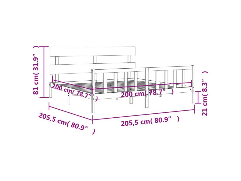 - Celkové rozměry postele: 205,5 x 205,5 x 81 cm (D x Š x V)