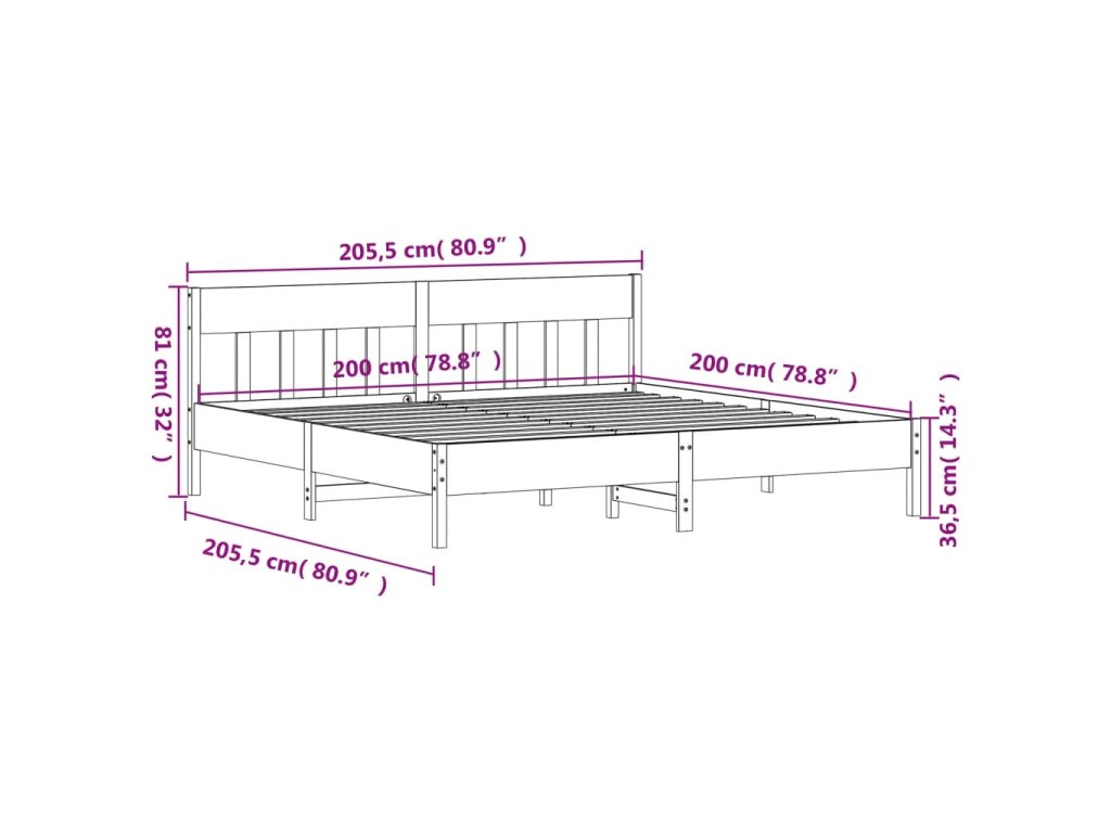 Postel bez matrace bílá 200 x 200 cm masivní borovice 3216201