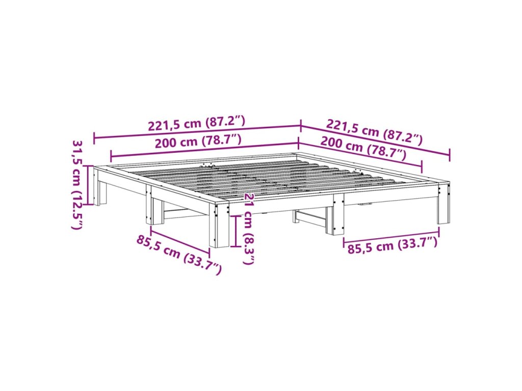 Postel bez matrace bílá 200 x 200 cm masivní borovice 3308727