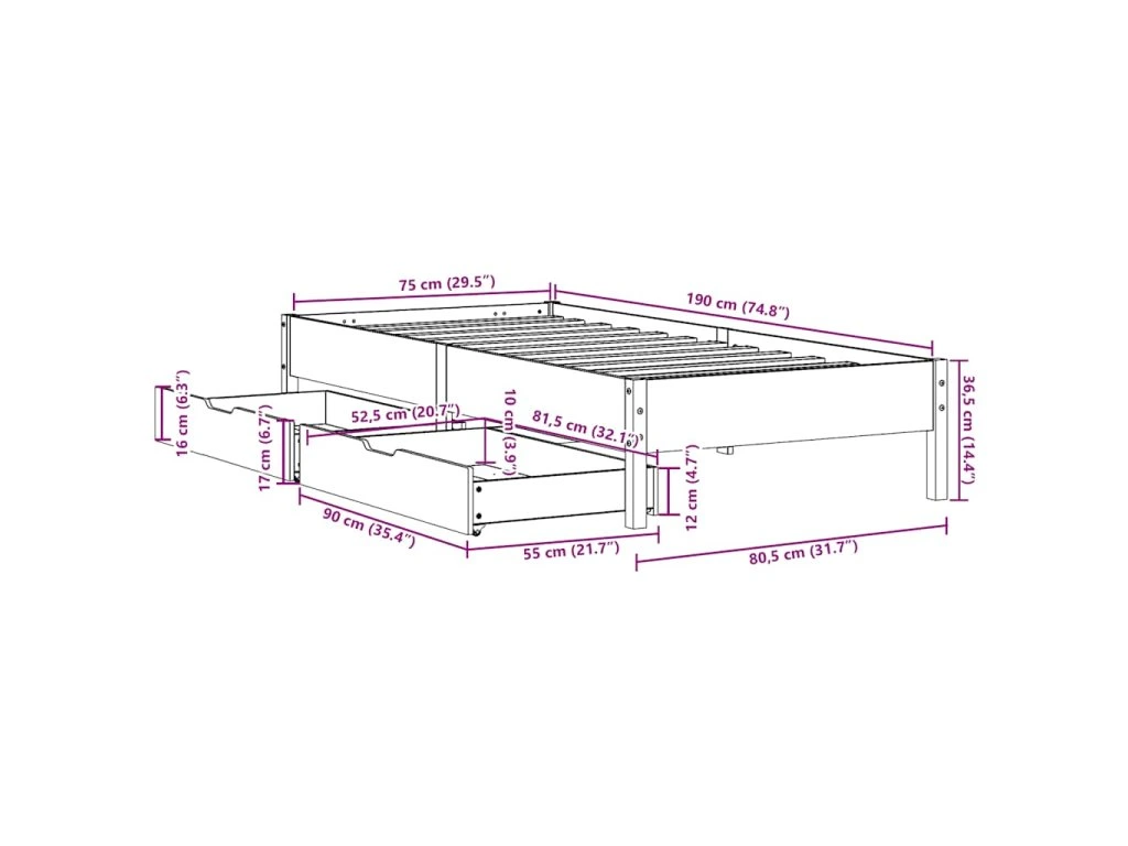 - Plně využijte prostor: Tento rám postele je vybaven dvěma zásuvkami, které poskytují úložný prostor pro uschování lůžkovin, sezónního oblečení a hraček.