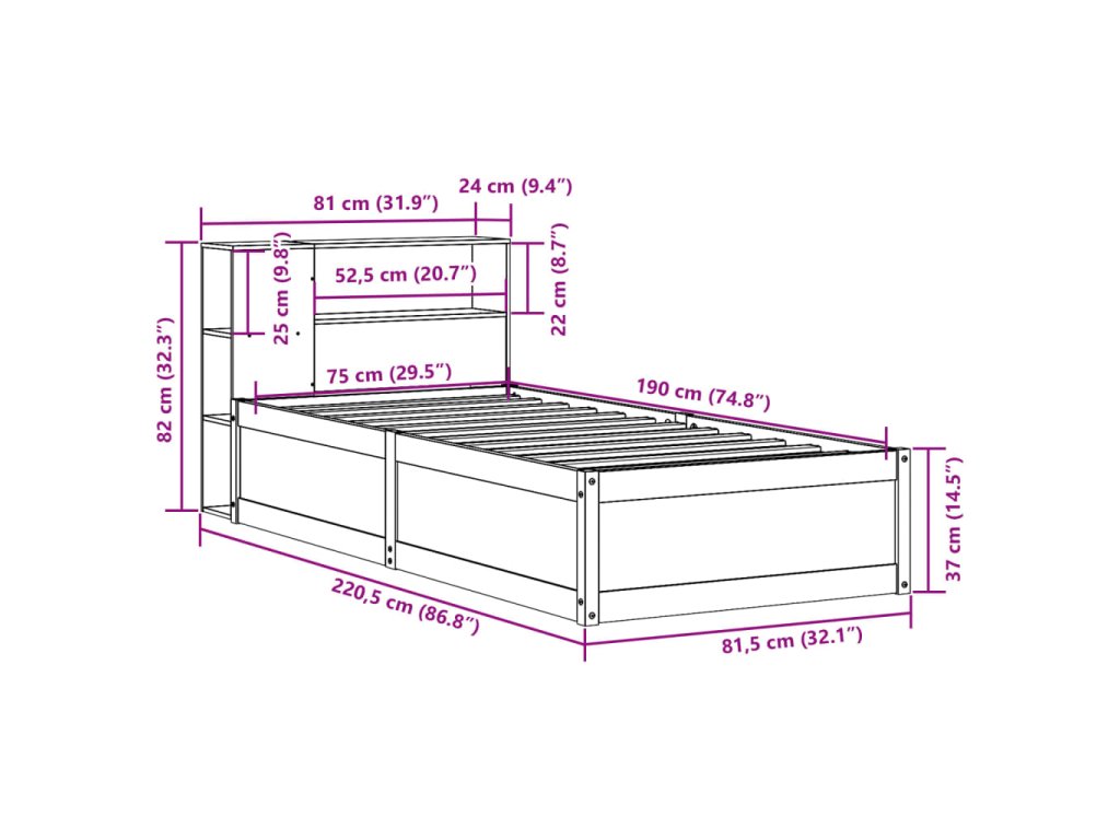 - Rozměry čela postele: 81 x 24 x 82 cm (D x Š x V)