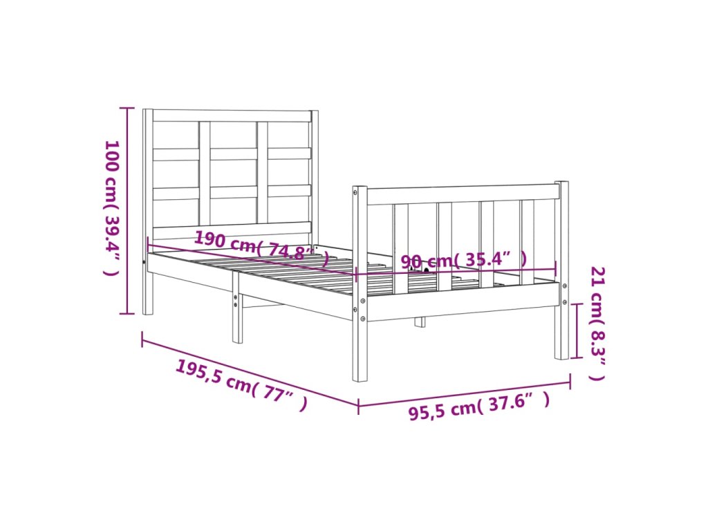 - Celkové rozměry postele: 195,5 x 95,5 x 100 cm (D x Š x V)