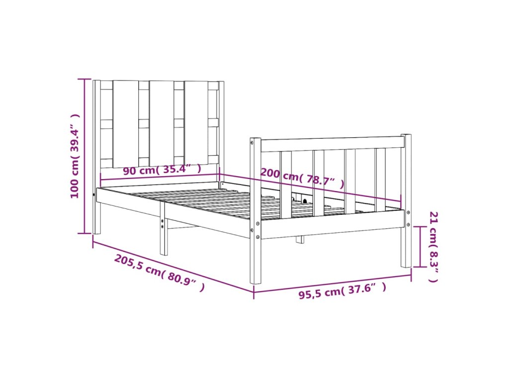 - Celkové rozměry postele: 205,5 x 95,5 x 100 cm (D x Š x V)