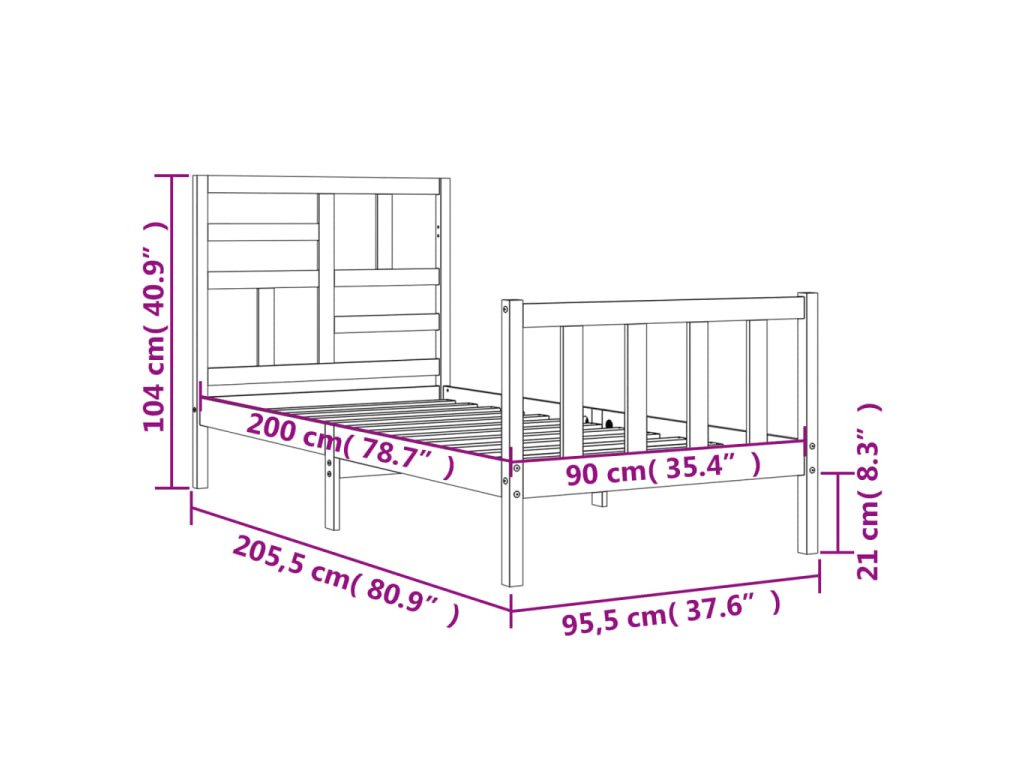 - Celkové rozměry postele: 205,5 x 95,5 x 104 cm (D x Š x V)