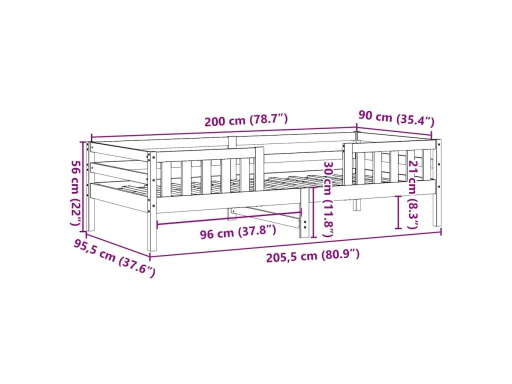 - Celkové rozměry: 205,5 x 95,5 x 56 cm (D x Š x V)